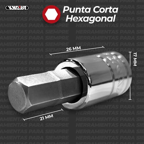 Jgo. de dados punta hexagonal cortas 1/2" 8 pzas.